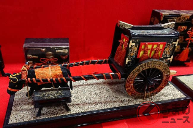 ちなみに最近の事情について聞くと「昔の商品ではけん引する牛もセットだったことが多いのですが、職人が減少したことによりいまでは御所車だけのことが多く、弊社ではいま牛がセットの商品は店頭にありません」と吉徳の広報担当者は説明します。