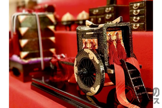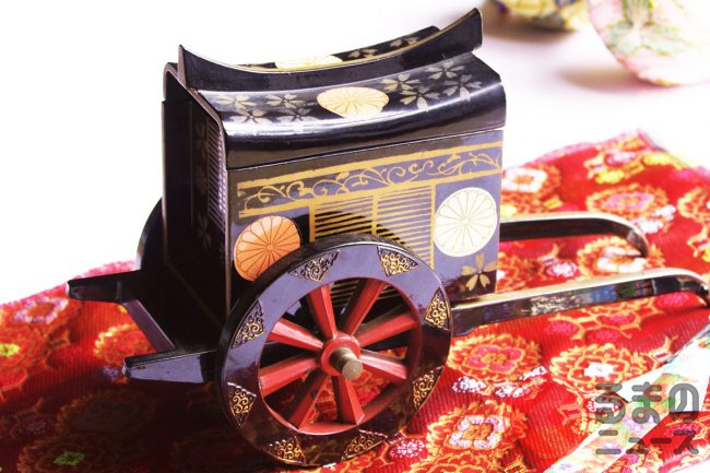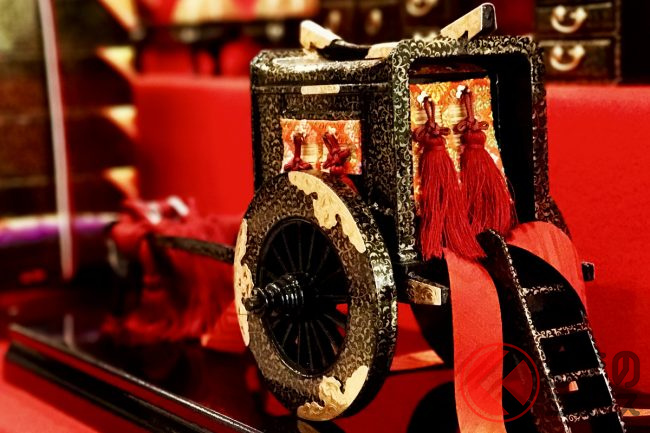 「ひな道具に含まれる御所車は、平安時代の身分の高い方(皇族や貴族)の乗りものを模したものです。