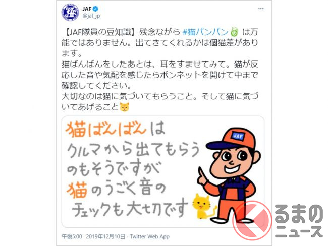「猫バンバン」だけじゃダメ! JAFが呼びかけ「猫が車に入り込んだことによるトラブル」の救援要請件数は1か月で22件