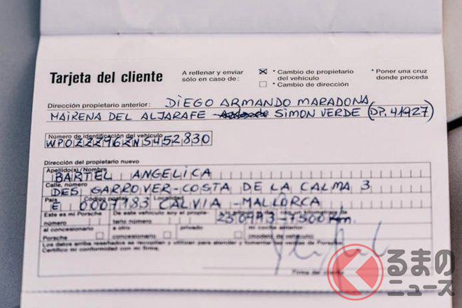 さらにいえば、オリジナルの保証書やメンテナンスブックは、マラドーナの名義であったことが記されていて、これだけでも価値がある、といっていいかもしれない。