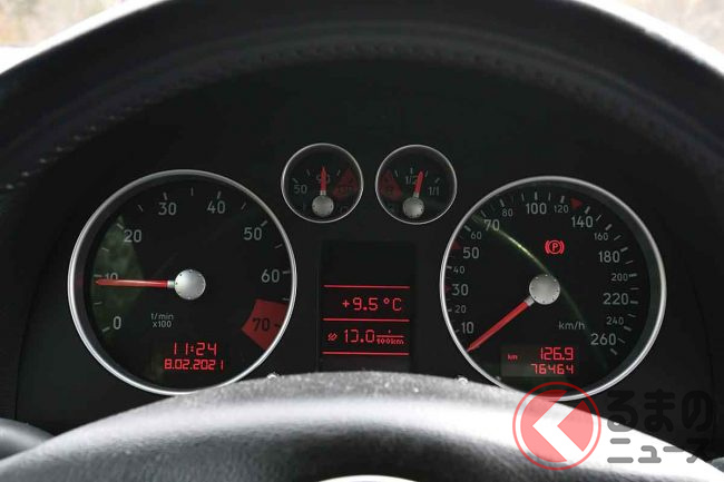 初代TTに乗るのは、おそらく20年ぶりのこと。目の前にあるのは、初度登録が平成11年11月と、じつに21年あまりも前の、走行7万7000kmたらずという個体。エンジンはAPX型1.8リッターターボを積む。