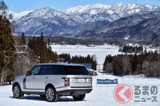 今回、スキー場のゲレンデをレンジローバーP400eで走ることもできた。気温も高く、場合によっては試乗を中止するかもしれないというコンディションであったのだが、レンジローバーP400eは力強く斜面を駆け上がる。