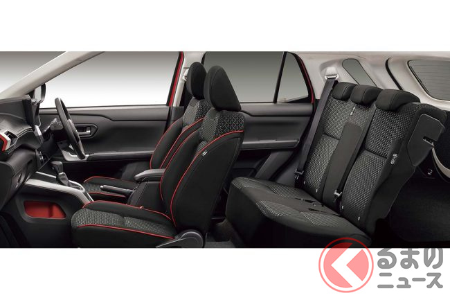 内装は、エアコンの操作パネルが若干異なるくらいで、ほぼ同じです。シート表皮は、新型アティバは大胆な赤いアクセントが施されたブラックレザーのシートが設定されており、ロッキーは、標準的なファブリックやファブリック×ソフトレザー調シートが用意されました。