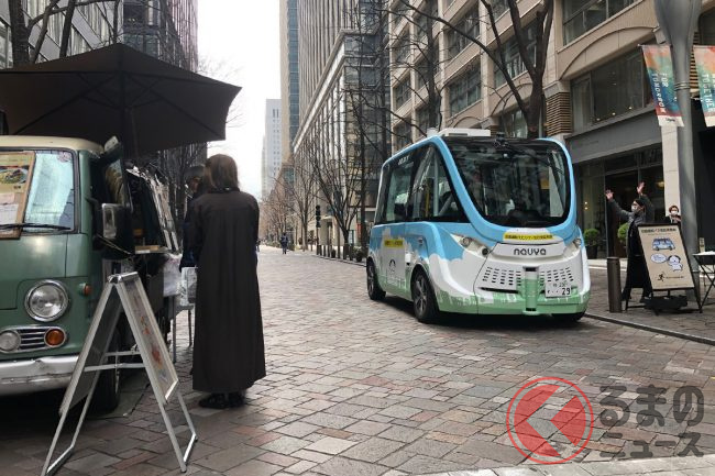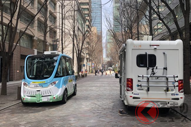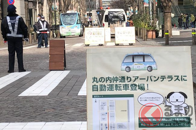 日本有数の大企業が集まる東京の大手町、丸の内、有楽町周辺では、歩行者天国がおこなわれる空間であるにも関わらず、キャンピングカーや自動運転バスが運用されるという新しい街づくりが進められています。本来クルマがいてはいけない空間にクルマを配する取り組みとは、いったいどのような狙いがあるのでしょうか。