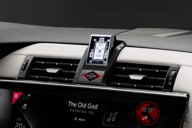 インテリアはオフホワイトのレザーをあしらったRIVOLIインスピレーションで、ひし形モチーフのダイヤモンドステッチが入り、それがドアトリムまで続くもの。1920年代にフランスで生まれたデザイン様式、アール・デコを連想させるものだ。