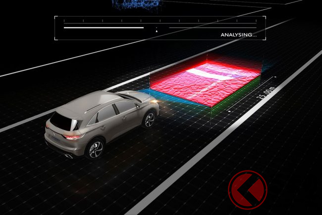 DSアクティブスキャンサスペンションは、フロントに装着されたマルチファンクションカメラが、車両前方5mから25mの範囲の路面状況を高速スキャンし路面の凹凸を検知、路面の先と車両の挙動を予測し、四輪のダンパーそれぞれを独立して減衰力の最適化をおこなうもの。これにより独自の浮遊感をともなった、滑るようなラグジュアリーなライドフィールを実現している。システムは約13km/hから130km/hで作動する。