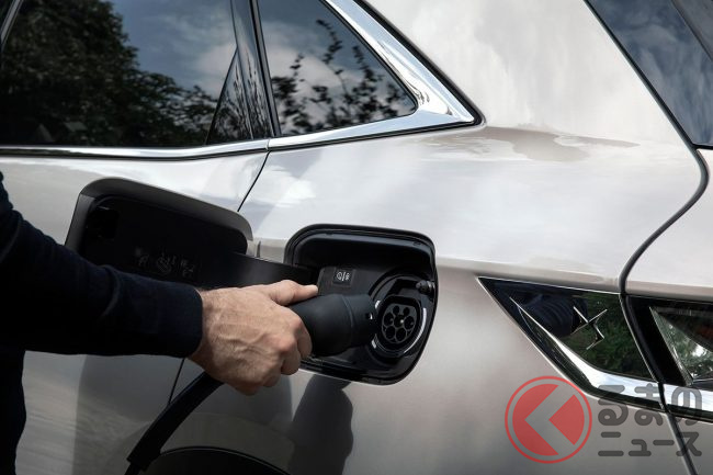 容量12.3kWhのリチウムイオンバッテリーをリアシート下に搭載。3kWの200Vコンセント型普通充電で約5時間、6kWの200Vウオールボックス型普通充電で約2.5時間で満充電になり、EVモードではWLTCモードで56kmの走行が可能。ハイブリッド燃費は14.0km/Lとなる。