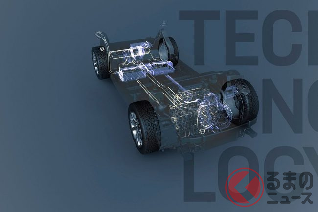 ガソリンエンジンの低速トルクを前後モーターが補うことで、0-100km/h加速は5.9秒(純内燃機関モデルは8.2秒)。さらに前後モーターは緻密な協調制御をおこなうことで、路面情報に応じたアクティブな駆動制御をおこなう。