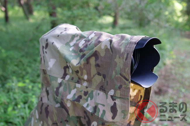 それならと、カメラの存在を隠すべく迷彩柄の布をかぶせてみました。しばらくはこの方法でうまく撮影ができるようになりました。