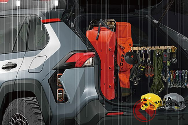 山岳救助車などの過酷な環境下で使用されるプロ仕様の車両を参考に開発され、ルーフトップやバックドア開放時の空間利用、さらにデッドスペースを活用した収納アイテムなどを装備し、RAV4をよりアクティブな雰囲気に仕立てたモデルでした。