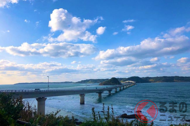 「まず、海の上を走れる爽快感が凄いです。車中泊をしながら日本一周をしましたが、この角島大橋の景観と爽快感は別格でした。青空とコバルトブルーの海に続く長いストレートは、一度走ったら何回も行きたくなります。
