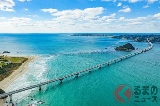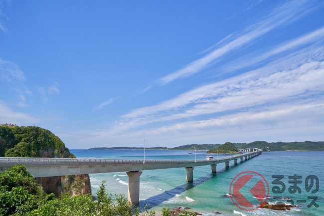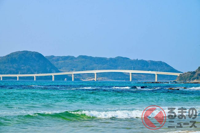 話題となっているのは角島と本州を結ぶ「角島大橋」です。2000年に開通した角島大橋は、本州と角島をつなぐ橋で、無料で渡れる一般道路としては、日本屈指の長さとなる1780mを誇ります。