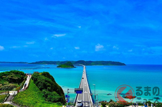 山口県にある絶景すぎる橋は、コバルトブルーの海の上を走ることができる、観光スポットでした。