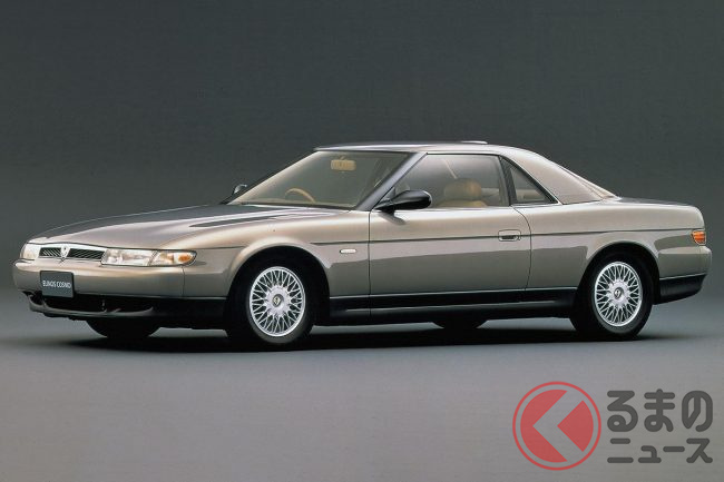 かつて、マツダの高性能エンジンといえばロータリーエンジンでしたが、このロータリーエンジンの性能を極限まで高めようとして開発されたのが、1990年に登場したユーノス「コスモ」です。