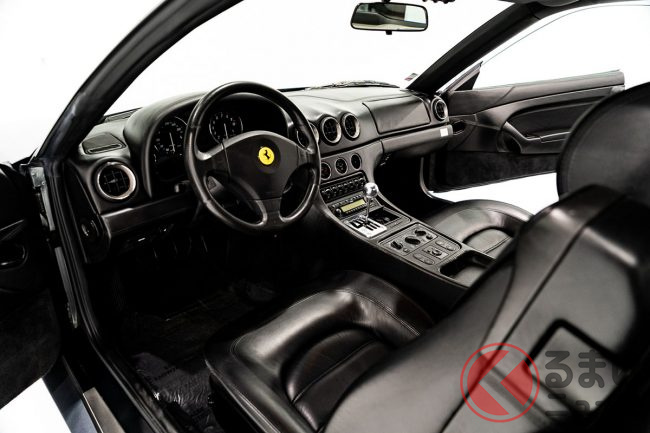日本国内を含む世界中のマーケットにて、安価なものならば500万−600万円の正札もあり得る456GTながら、この個体に1000万円を超える値付けがなされた最大の理由は、この時代の456では希少な6速マニュアル車だからに違いあるまい。