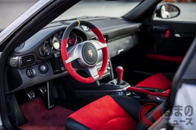 出品車のGT2 RSは、オプションでPCMステレオシステム、スポーツクロノパッケージ、スポーツシート、カーボンファイバーセンターコンソール、リチウムイオンバッテリー等々を搭載したモデルである。