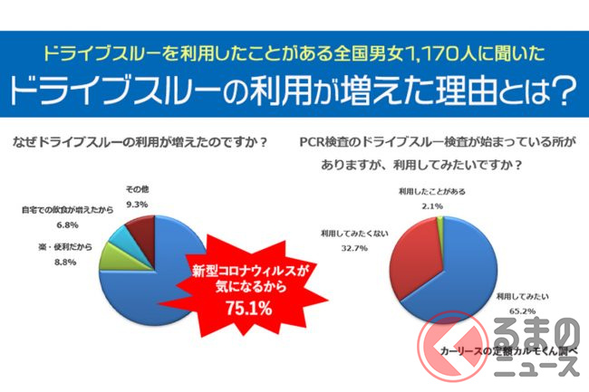 「店に入りたくない」コロナ禍でドライブスルー利用66%が増加! PCR検査もドライブスルー希望者多数