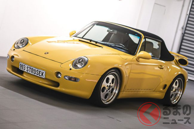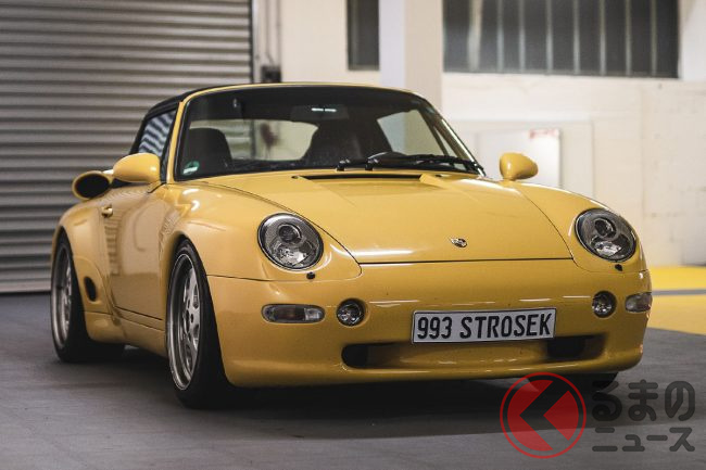 実際に出品されるのは、1996年式のポルシェ「911(993)カレラ・カブリオレ」で、ボディカラーはシュトロゼックのカンパニー・カラーともいえるイエローである。