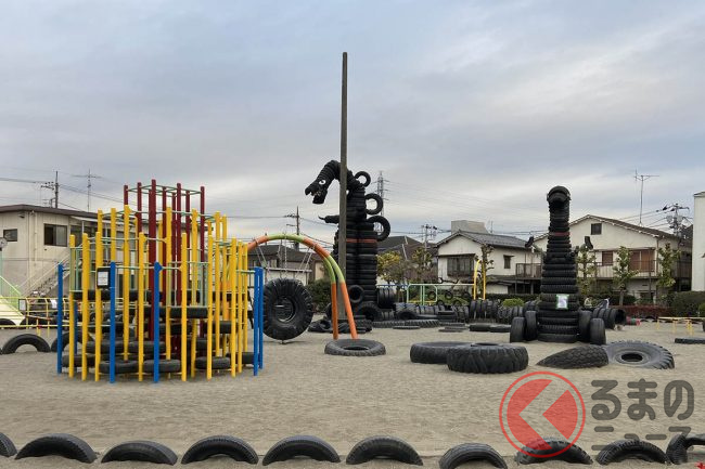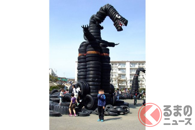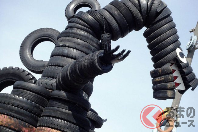 巨大タイヤ怪獣現る!? 3000本のタイヤで埋め尽くされたタイヤ公園とは