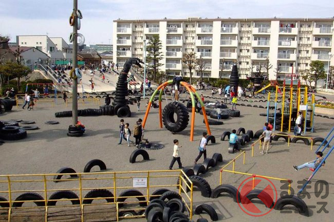 東京都大田区にあるタイヤ公園は、エコで安全な、近隣住民の最高の遊び場でした。