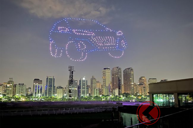 メキシコ市場での新型キックス発表を受け、おこなわれた今回のパフォーマンスでは、400台のドローンが投入されサンパウロの空を編隊飛行し、夜空に巨大な新型キックスを映し出しました。