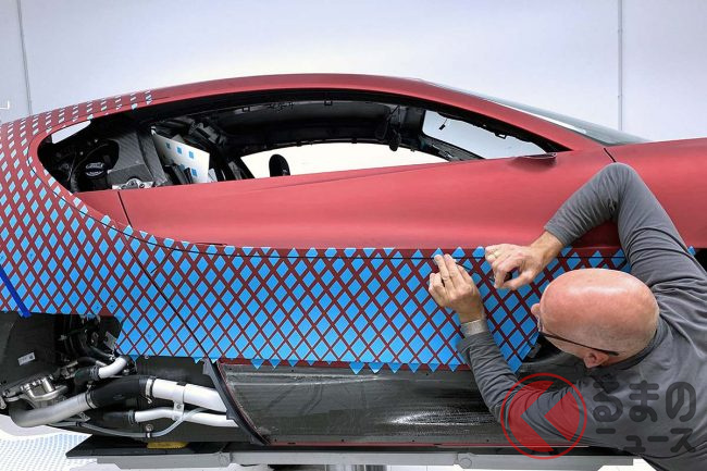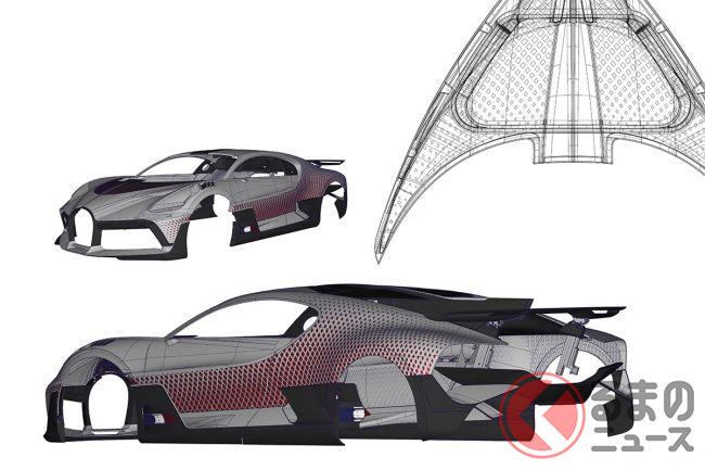 だが、話はそれで終わるほど簡単ではなかった。ブガッティのチームがここで直面したのは、ダイヤモンドのパートを車体に正確に塗装することがどれほど難しいかという問題だった。