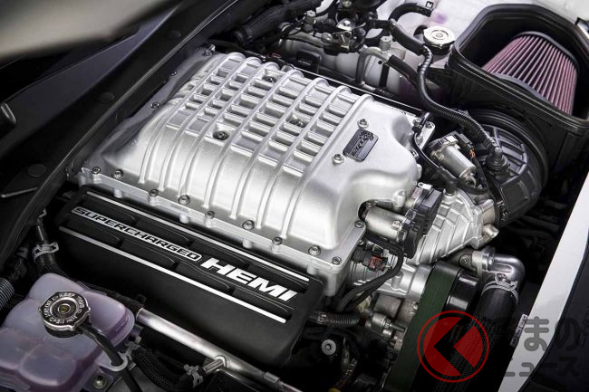 チャージャーSRTヘルキャット レッドアイは、通常ボディに幅3.5インチのワイドフェンダーを装着した「ヘルキャットワイドボディ」を採用。また搭載する6.2リッターV型8気筒OHV+スーパーチャージャーエンジンは、797ps・960Nmという最高出力/最大トルクにまで性能を向上させている。
