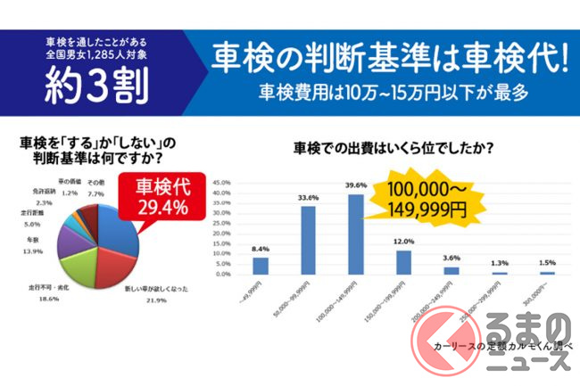 今回の調査により、車検をとおすかどうかを考える際には車検代を意識する人が多く、車検にかかる金額は5万円から14万9999円くらいが多いことがわかりました。