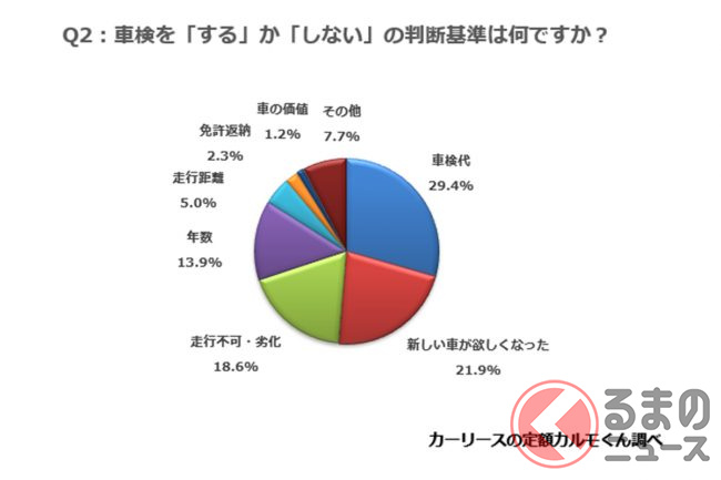そこで、同じ1385人に車検を「する」か「しない」かの判断基準はを聞きいてみました。