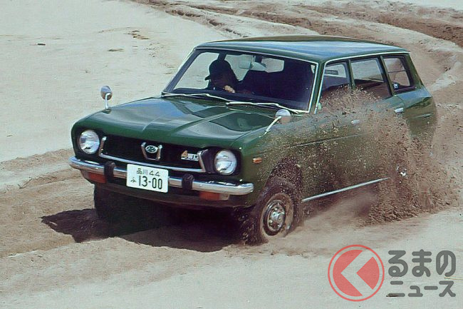 スバルは1971年に、東北電力から巡回用にとのリクエストにより、「ff-1・1300Gバン」をベースにした4WD車を開発。僅かな台数が生産されたff-1・1300Gバン4WDの技術を応用したのがレオーネ エステートバン4WDで、世界初の乗用4WD車といわれています。