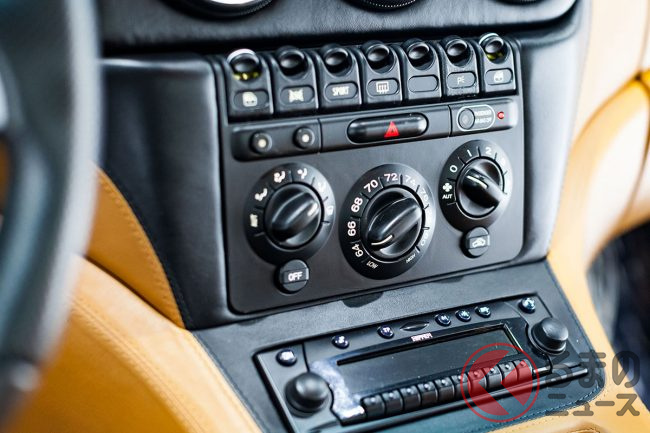 またイエロー塗装のブレーキキャリパー、左右フェンダーの「スクーデリア・フェラーリ」の紋章、そして「デイトナ」スタイルのシートインサートなどのエキストラオプションが満載された、この時代のフェラーリが好きなファンにとっては魅力的に映る1台といえよう。