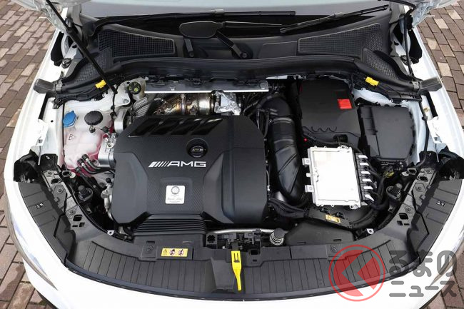 今回テストしたメルセデスAMG「GLA 45 S 4MATIC+」は、メルセデスのコンパクトモデルのなかでもSUVボディのGLAがベース。ここに、4気筒エンジンとしては世界最強とされる最高出力421ps、最大トルク500Nmの2リッターターボを搭載し、8速ATを介して4輪を駆動するハイパフォーマンスモデルです。