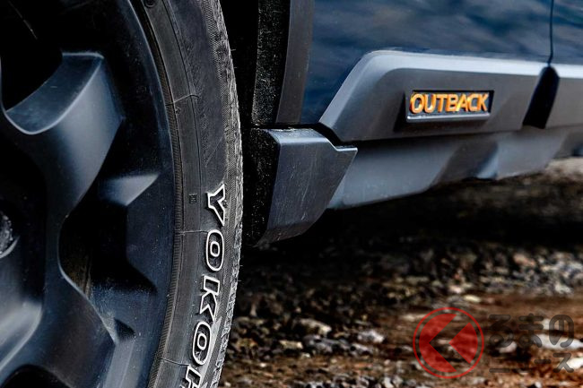 ティザー画像では、ボディ下部サイドのクラッディング部にオレンジ色の「OUTBACK」のロゴが装着され、ホワイトレーターのYOKOHAMAオールテレインタイヤとマットブラックの頑丈そうなホイールを履いていることがわかります。