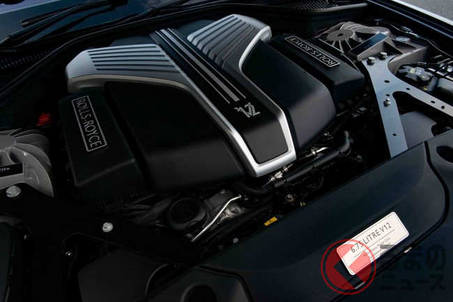 車台を一新した一方で、心臓部には純内燃機関を受け継いだ。ファントムやカリナンでおなじみの6.75リッターV型12気筒ツインターボエンジンである。これに8速ATを組み合わせ、わずか1600回転からフラットに850Nmもの大トルクを発揮する。この大トルクをロールス・ロイスのサルーンとしては初めて4WDシステムにより路面へと伝えることになった。