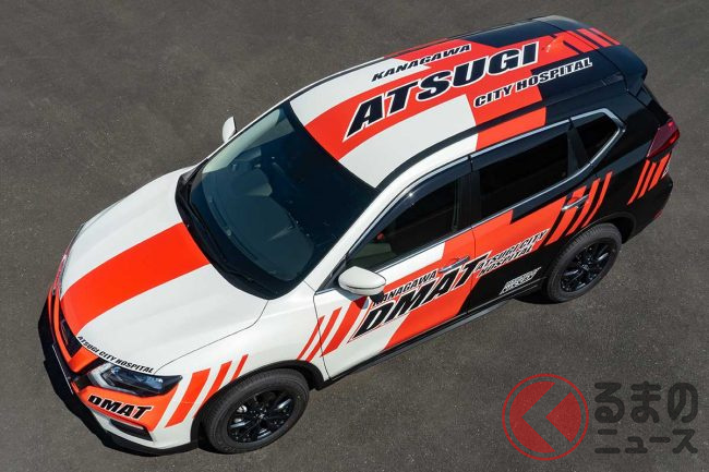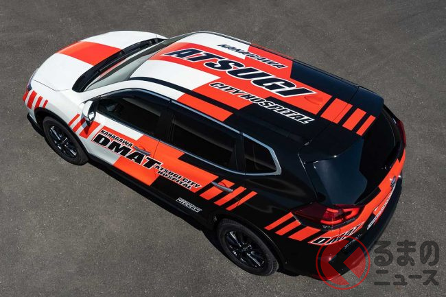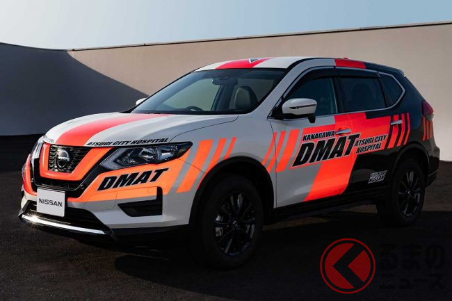 日産「エクストレイル」をド派手にラッピング! 災害現場で活躍するDMAT仕様誕生!