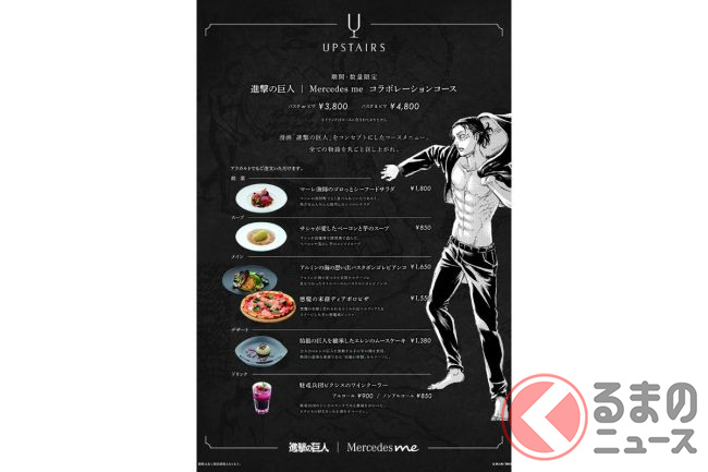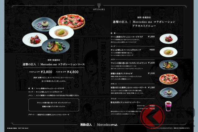 また2F:UPSTAIRSでは「進撃の巨人/Mercedes meコラボレーションコース」として、「進撃の巨人」をコンセプトにしたコースメニューまで用意される。