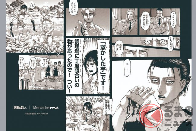 メルセデス・ベンツのブランド情報発信拠点「メルセデス ミー」(Mercedes me)では、世界的大ヒット作品『進撃の巨人』(作者:諫山創)とのコラボレーション企画展示を、2021年3月27日よりMercedes me Tokyo(六本木)、Mercedes me Osaka、Mercedes me @ Shinagawa Prince Hotelにて開催する。