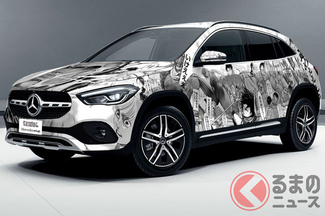今回、このコラボレーションのために特別にデザインされる、メルセデス・ベンツの人気コンパクトSUV「GLA」のラッピングカーを製作。このデザインは、「進撃の巨人」で心に響いた感動セリフをTwitterで投稿してもらった、厳選したセリフを中心にデザインしている。