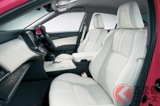 内装にもホワイトとブラックの組み合わせに、テリー伊藤氏がカラーコーディネートを手掛けたというピンクのステッチや、各部にピンクの差し色が導入されています。