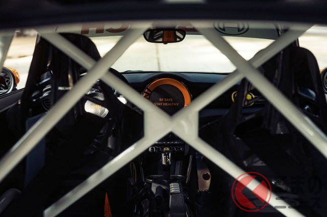 スパッツとスポイラーはMINIオックスフォード工場で作られている。これはリサイクルされたCFRP(炭素繊維プラスチック)から3Dプリントされている。
