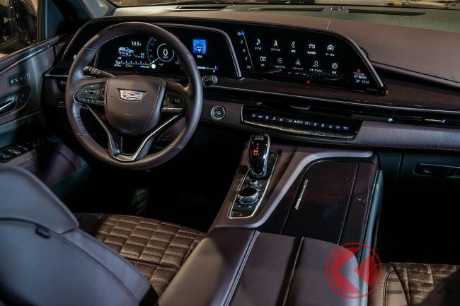 フロントフェイスは従来型のタテ目から水平基調のヘッドランプに変更されて、大きく印象が変わりました。また大型グリルを備えており、力強さはキャデラックのSUVのなかでも随一。