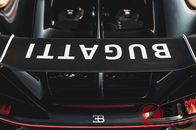 また、こちらもブガッティのアイコンであるボディサイドの「Cライン」とテールライトベゼルとホイールは、ダークなペイントワークを際立たせる「ガンパウダー(Gun Powder)」仕上げ。