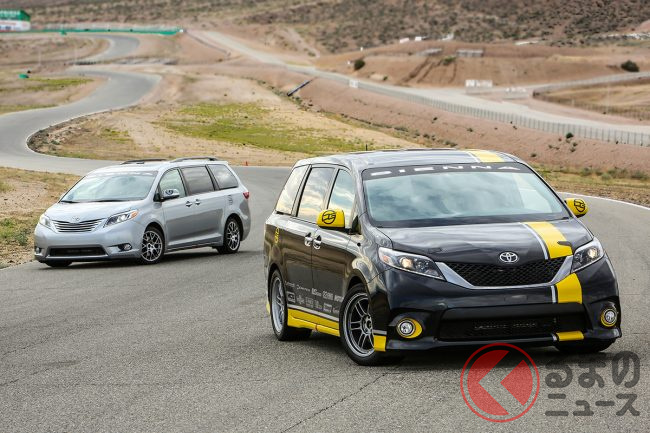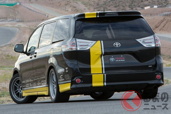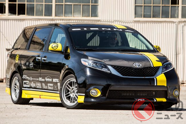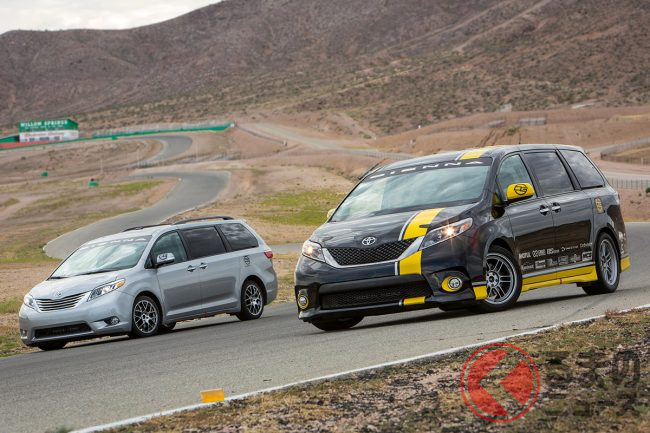 トヨタの北米法人が2015年のSEMAショーにあわせて開発した「シエナ Rチューンドコンセプト」は、トヨタが北米を中心に展開するミニバン「シエナ」の先代モデルをベースに、機械式クラッチやアジャスタブルショックアブソーバー、高性能ブレーキ、ハイパフォーマンスタイヤなどを装着。