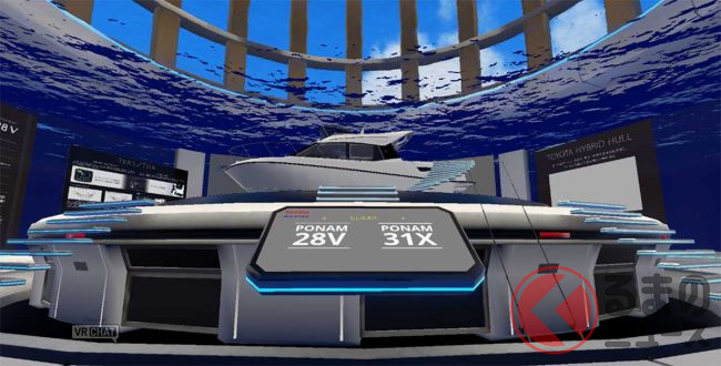 このなかでトヨタのマリン事業室が、外部特設ブース「TOYOTA Marine WORLD」を開設。レクサスのフラッグシップヨット「LY650」や、トヨタのスポーツクルーザー「PONAM-28V」「PONAM-31」の計3艇を1分の1スケールで3Dモデルとして忠実に再現しました。