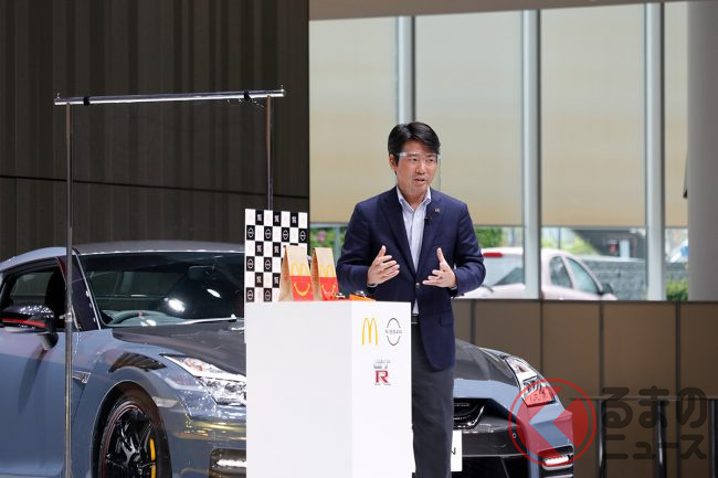 GT-R NISMO 2022年モデルが先行公開されたオンラインイベントでは、日本マクドナルド マーケティング本部の元浜裕貴氏と日産のチーフ・プロダクト・スペシャリスト 田村宏志氏が登壇。今回の経緯を説明しました。
