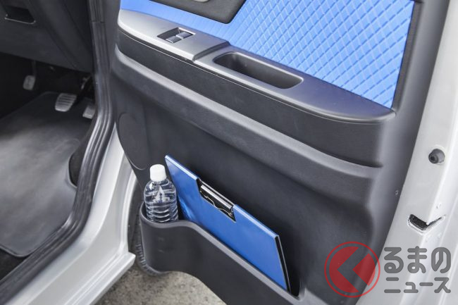 車内ではパソコンや書類バインダー、1リットル紙パック飲料などが効率よく置ける収納スペースがあちこちに配置されており、佐川急便の配達員が使いやすさを感じることを最優先にした設計となっています。