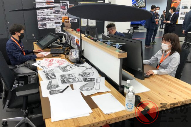そのうち、日本のこの施設には量産に向けたプロダクションデザイン、先行開発のアドバンスデザイン、そしてモデラーなどによるフィジカルデザインと、合計約20人が従事しています。
