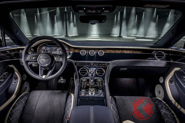 新型コンチネンタルGTスピード コンバーチブルは、W12 TSIエンジンの改良版を搭載し、最高出力は24ps向上した659ps、最大トルクは900Nmを発揮し、0−100km/h加速3.7秒、最高速335km/hという性能を誇る。