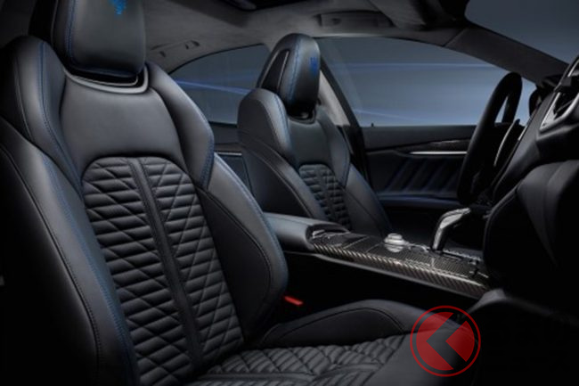 エクステリアにおいては、マセラティ伝統の三連のサイドエア・ベント、ブレーキキャリパー、Cピラーのサエッタロゴにブルーカラーのアクセントが取り入れられている。このブルーアクセントは、インテリアのシートステッチにも施され、ヘッドレストにはブルーのトライデントロゴを刺繍。ドアパネルやダッシュボードにも同様の意匠が施され、インテリアに軽やかさと現代性が与えられた。