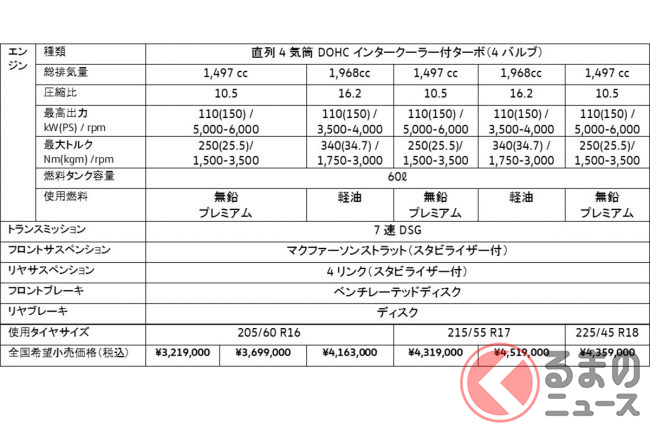 パワートレインにおいては、従来の1.4リッターTSIエンジンに代わり、あらたに1.5リッターTSIエンジンを採用。ディーゼルエンジンには従来の6速DSGに代わり、あらたに7速DSGを採用することで、いままで以上にスムーズなシフトチェンジによるドライビングを可能とした。